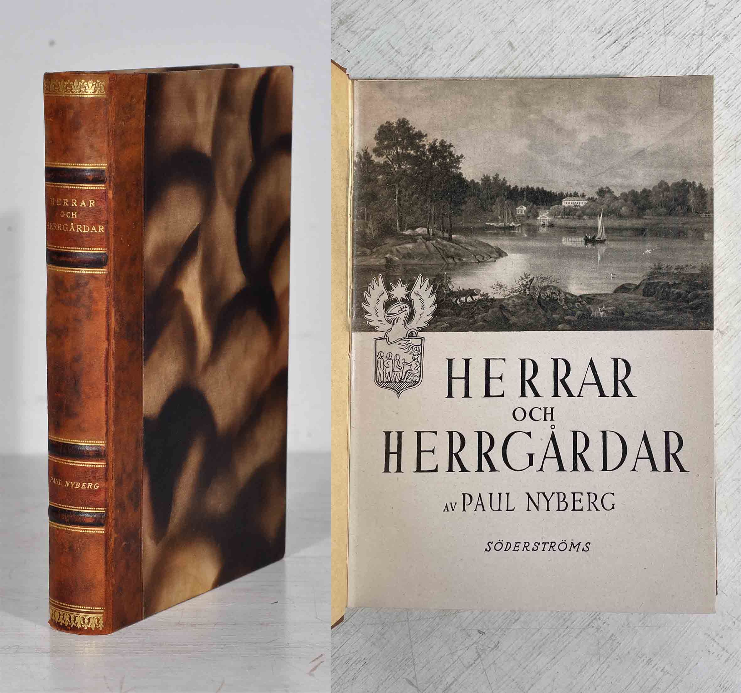 Paul Nyberg (1889-1968) var bibliotekarie och skriftställare, ”Herrar och herrgårdar” behandlar intressanta människoöden från hans släkt. Innehåller: ”Carl Serlachius, skald och advokat. En kulturbild från frihetstiden”, ”Med plogen och boken i Adolf Fredriks tid” [om Henrik Nybergs boksamling], ”Ett miniatyrporträtt från vänskapskultens tider” [Om Carl Petter Nyberg], ”Sägen och sanning om amiral Cronstedt”, ”Mannen från Kristina. Minnen och anekdoter om Otto Henrik von Fieandt”, ”En gammal mamsell. Ett kapitel ur en släkthistoria” [Hedvig Kristina Nyberg], ”Det överkorsade testamentet. Ett stilla sorgespel”, ”Landsvägsromantik och gästgivarprosa I-II”, ”Stansvik en herrgårdsidyll” och ”Bilder tagna ur sällskapslivet på 1850- och 1860-talen”.