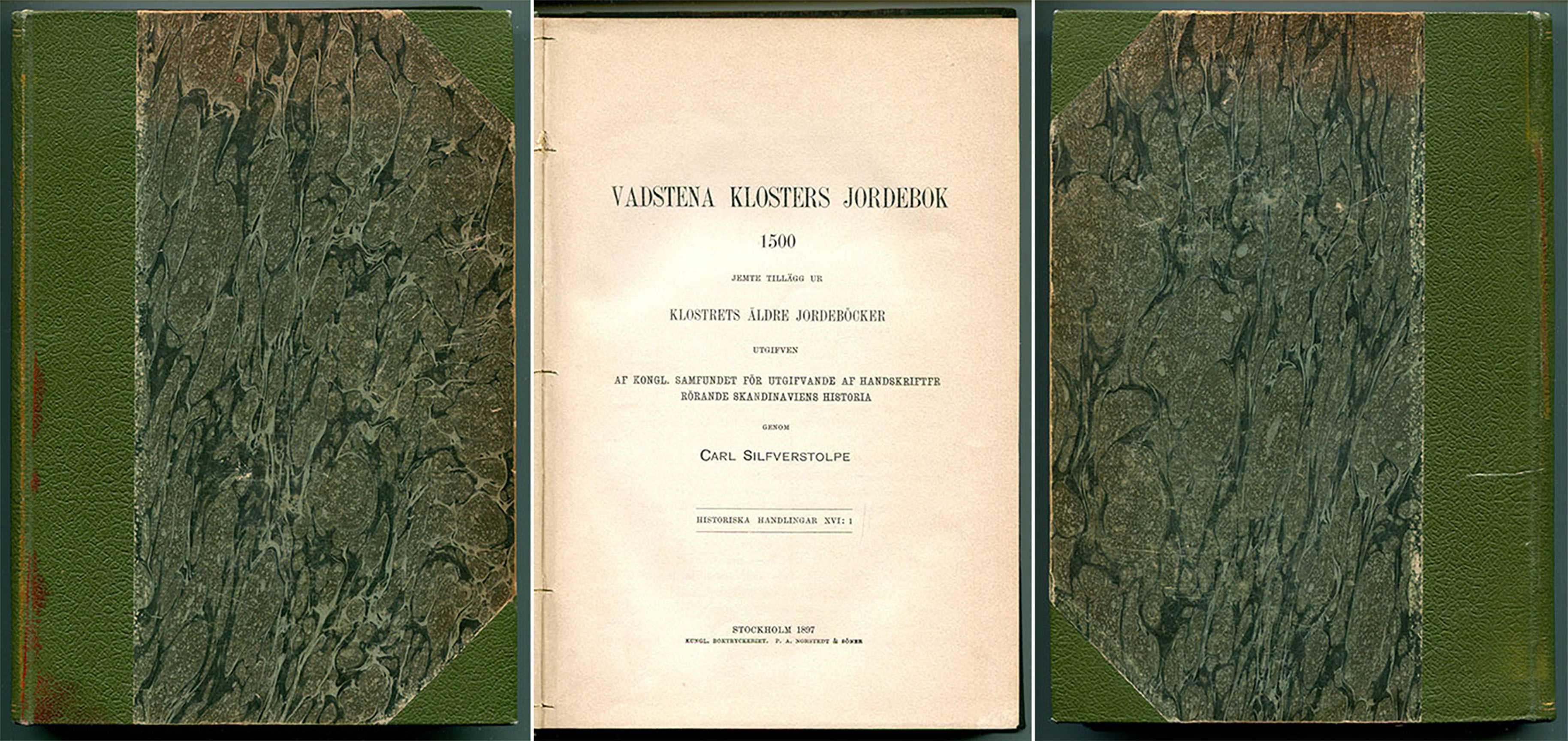 Historiska handlingar XVI:1. Vadstena klosters jordebok från år 1500 saknar tidsangivelse men går att bestämma utifrån äldre jordeböcker, vilka finns bevarade för åren 1447, 1466 och 1480. Förtecknar 865 jordegendomar och avslutas med ett person- och ortregister, från