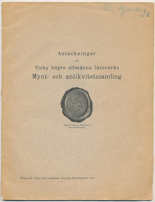 Anteckningar om Visby högre allmänna läroverks mynt- och antikvitetssamling.