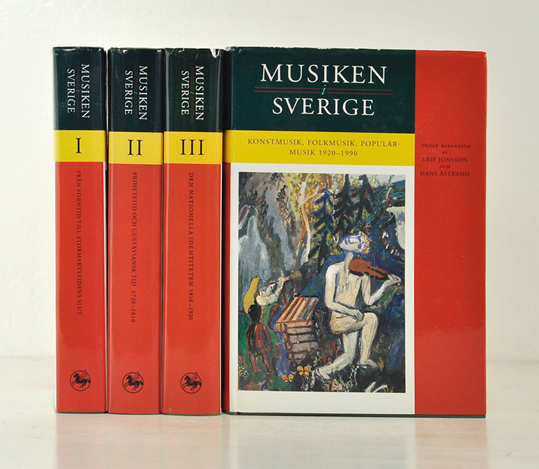 I redaktionen ingick även Anne-Marie Nilsson, Greger Andersson, Anna Ivarsdotter-Johnson, Martin Tegen och Hans Åstrand. I: Från forntid till stormaktstidens slut 1720. II: Frihetstid och gustaviansk tid 1720-1810. III: Den nationella identiteten 1810-1920. IV: Konstmusik, folkmusik, populärmusik 1920-1990.