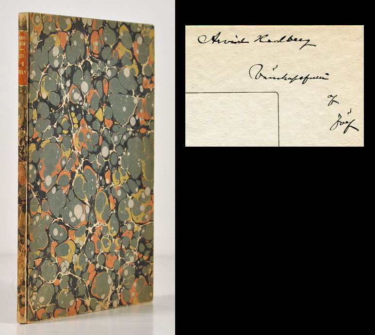 Sthlm, 1915. 53 s. Ngt nött marmorerat pappbd med ganska repad titeletikett i skinn (Hedberg). Omslaget medbundet. Pärmarna lite bågnade. Dedikation till Arvid Hedberg.