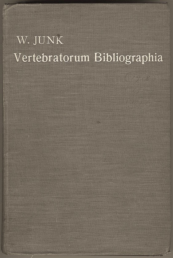 Vertebratorum Bibliographia. W. Junk. Verlag und Antiquariat für Naturwissenschaften. Scientific publisher and antiquarian bookseller. Editeur et Librairie ancienne des Sciences Naturelles. [=omslagstitel].