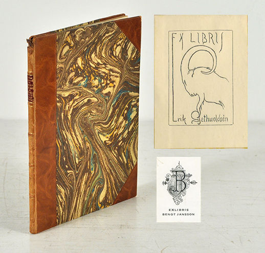 Uppsala, 1915. 8 s. Nött hfrbd med röd titeletikett, marmorerade pärmpapper och medbundet omslag. Övre kapitälet trasigt. Erik Gjethwoldséns respektive Bengt Janssons exlibris.