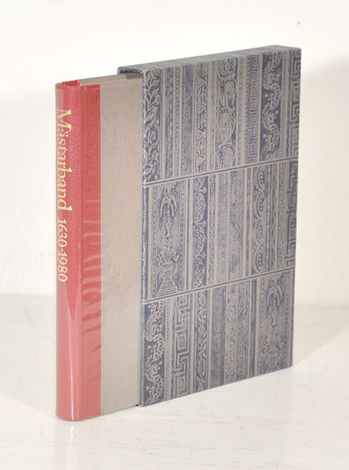 Nummer 102 av 200 exemplar av bibliofilupplagan i originalband. Fint illustrerad utställningskatalog med värdefulla texter om bokband från fyra århundranden som ger en historisk överblick av det svenska bokbandets olika stilinfluenser under rubrikerna: ”Fullhorn & pilaster 1620-1635”, ”Solfjäder & filigran 1636-1670”, ”Vaggmed & lambrequin 1672-1765”, ”Gyllenläderstilen 1655-1765”, Rocaille & a la grecque 1750-1810”, ”Voluter, palmetter & blommor 1796-1860”, ”Pastischer & l’art nouveau 1850-1920”, ”Fria kompositioner 1930-1980”, ”Överdragspapper från fyra sekel” och ”Förlagsband 1832-1980”. Katalogen beskriver och avbildar bokband som utförts av våra mest framstående bokbindare. Den är formgiven av Herbert Lindgren och flera band komponerade av honom är också beskrivna och avbildade.