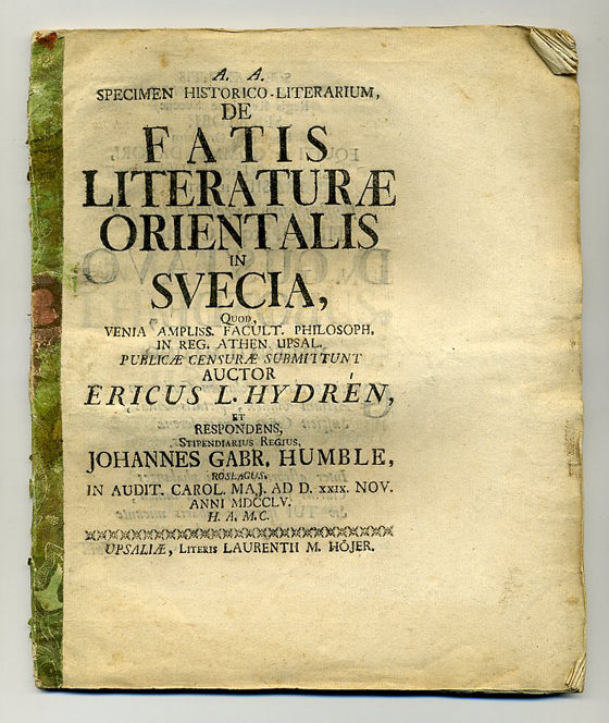 HYDRÉN, ERICUS L. [preses] & HUMBLE, JOHANNES GABR. [respondent].