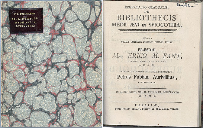 Almquist Sveriges bibliografiska litteratur 2591. Marklin Catalogus disputationum 27. Petrus Fabian Aurivillius (1756-1829) är kanske mest känd för sin katalog över Uppsala universitetsbiblioteks samlingar.