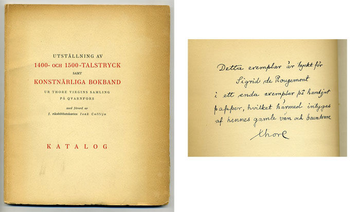 Utställning av 1400- och 1500-tals tryck samt konstnärliga bokband ur Thore Virgins samling på Qvarnfors med förord av f. riksbibliotekarien Isak Collijn. Katalog.