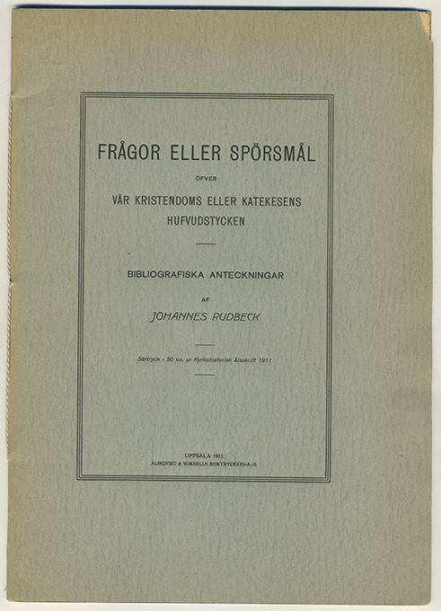 Frågor eller spörsmål öfver vår kristendoms eller katekesens hufvudstycken. Bibliografiska anteckningar. Särtryck ur Kyrkohistorisk årsskrift 1911.