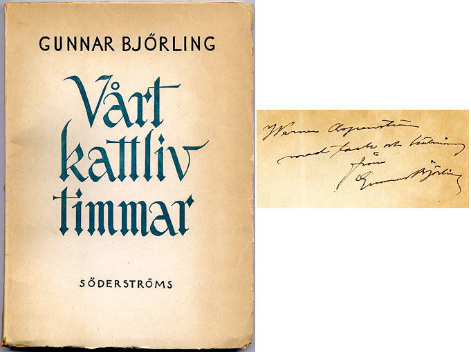 Helsingfors, Mercators tryckeri, 1949. 108,(3) s. Häftad och oskuren, Omslaget något bruntonat. Fläck på främre omslagets insida. Smutstitelbladet och sista, blanka, sidan något missfärgade p.g.a. omslaget. Blyertsnotering på smutstitelbladet och enstaka diskreta marginalmarkeringar i blyerts. Dedikation till ”Werner Aspenström med tack och hälsning från Gunnar Björling”. Ur Carl Olov Sommars bibliotek.