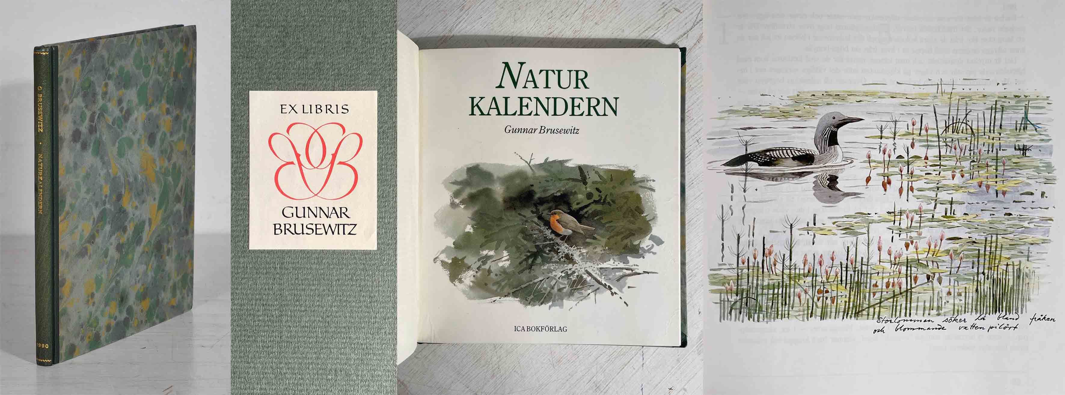 Västtyskland, 1990. 95 s. Grönt halvmarokängbd med guldlinjerad rygg, marmorerade pärmpapper och ljusgrönt övre snitt. Omslaget medbundet, det bakre småfläckigt. Ryggen blekt och med någon mindre fläck samt obetydlig repa. Rygghuvudet med en ytterst liten nötning. Två tidningsurklipp och ett omslag till en frimärkeskarta med fågelmotiv löst ilagda. Med Gunnar Brusewitz exlibris.