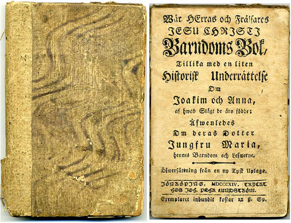 Wår herras och frälsares Jesu Christi barndoms bok, tillika med en liten historisk underrättelse om Joakim och Anna, af hwad slägt de äro födde; äfwenledes om deras dotter jungfru Maria, hennes barndom och lefwerne. Öfwersättning från en ny tysk uplaga.