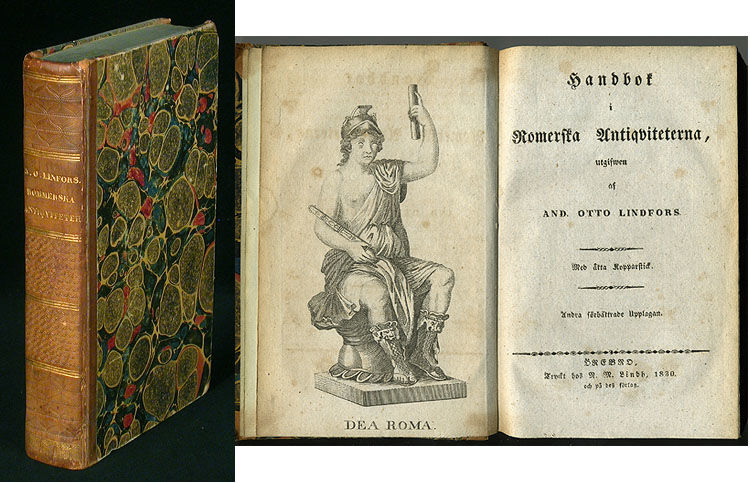 Örebro, N. M. Lindh, 1830. 8:o. Grav. front,(10),510 s. & 7 delvis utvikbara grav. plr. Trevligt samtida hfrbd med guldornerad och blindpressad ryggdekor. Blåstänkta snitt. Delvis lätt lagerfläckig. Litet bläckstänk på s. 256. Flera av planscherna nära skurna med viss textförlust. Plansch III även med minimal bildförlust.