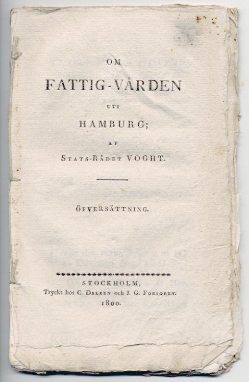 Översatt av Jonas Strömwall. Med ett företal riktat till ”directionen öfver Gustafs inrättning, til understöd för Stockholms stads fattige arbetare”.