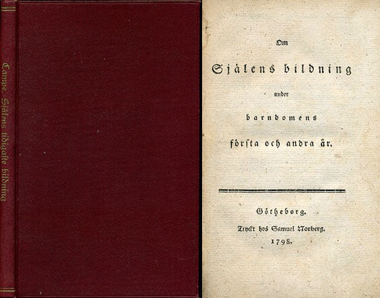 Smutstitelbladet har titeln ”Själens tidigaste bildning”. Detta är en, enligt förordet förkortad, version av ”Über die früheste Bildung junger Kinderseelen im ersten und zweiten Jahre der Kindheit” som utgör andra delen av Campes ”Allgemeine Revision des gesamten Schul- und Erziehungswesens” och utkom 1785. Skriften är explicit riktad till mödrar.