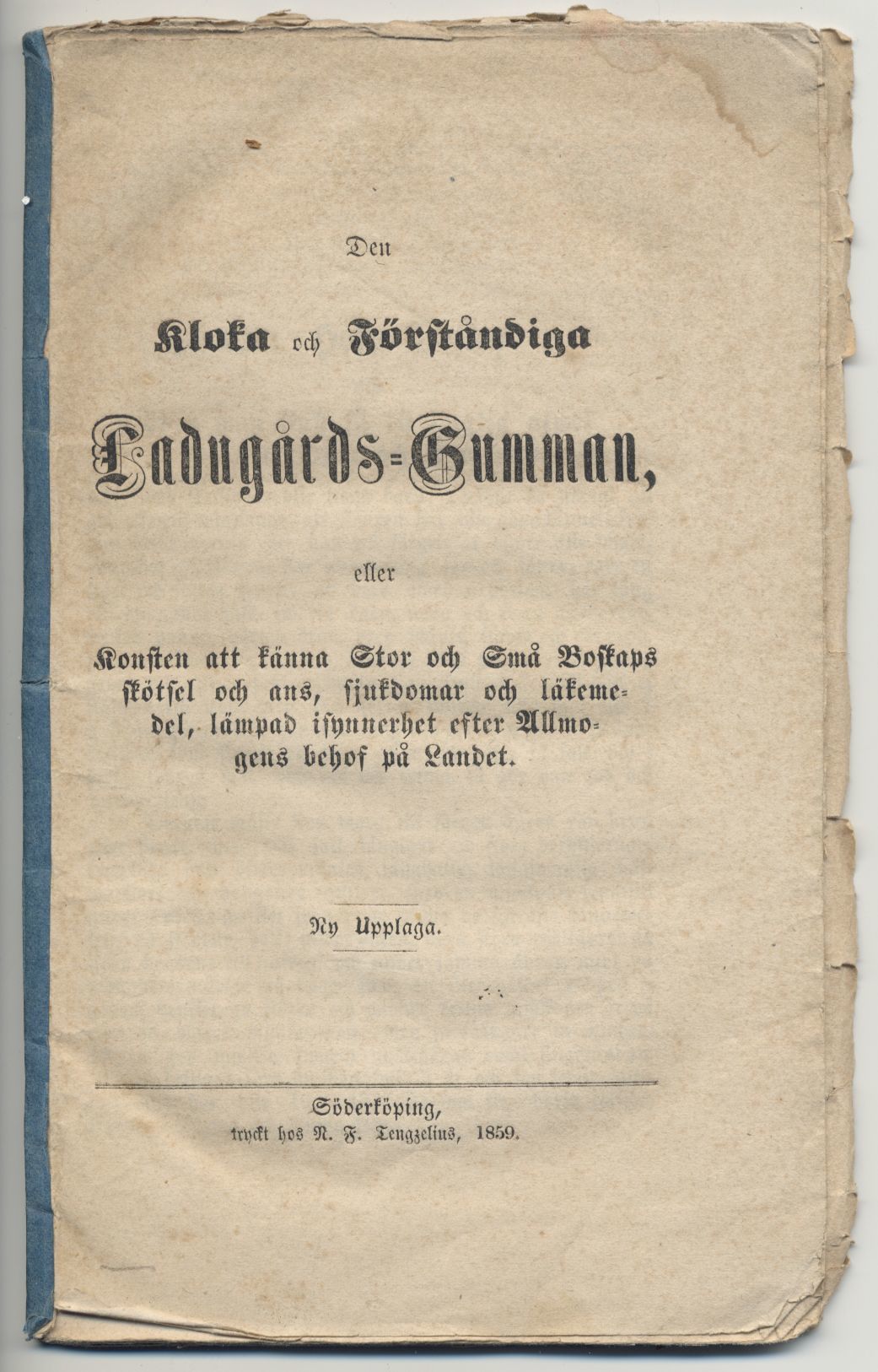 Den kloka och förståndiga ladugårds-gumman, eller konsten att känna stor eller små boskaps skötsel och ans, sjukdomar och läkemedel, lämpad isynnerhet efter allmogens behof på landet. Ny upplaga.