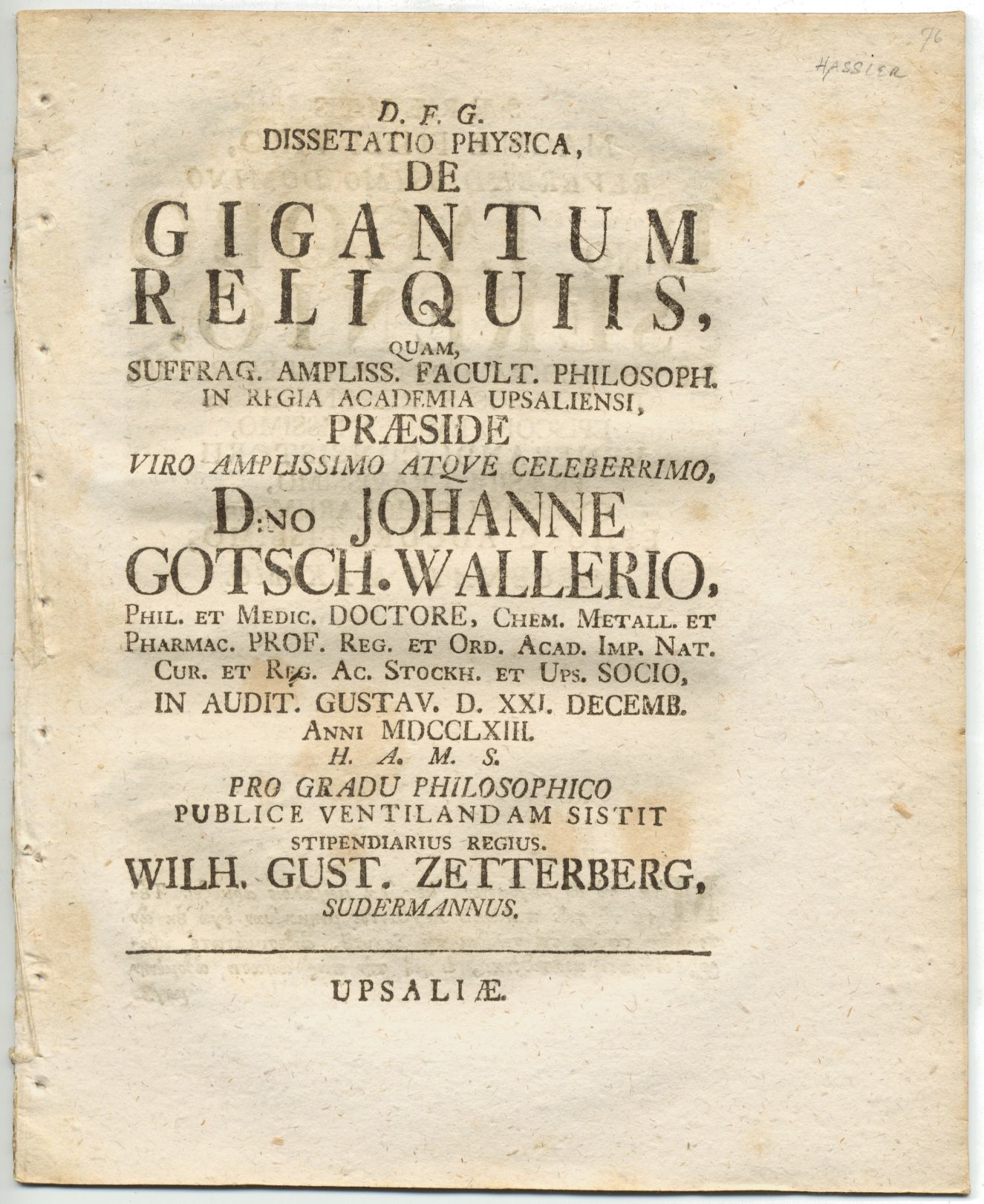 WALLERIUS, JOHAN GOTSCHALK [preses] & ZETTERBERG, WILHELM GUSTAF. [respondent].