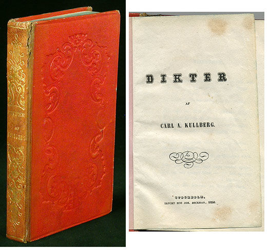Sthlm, J. Beckman, 1850. 12:o. (4),326,(1),238-39,(1) s. Samtida ngt nött hfrbd med rikt guldornerad rygg, brandgula blinddekorerade pärmar och ljusblå marmorerade snitt. Falsarna med sprickor överst. Enstaka småfläckar och några blyertsanteckningar. Smärre fläckar i övre marginalen mot slutet. Dedikation till ”prostinnan Tengborg”. Ur Dan Korns samling.