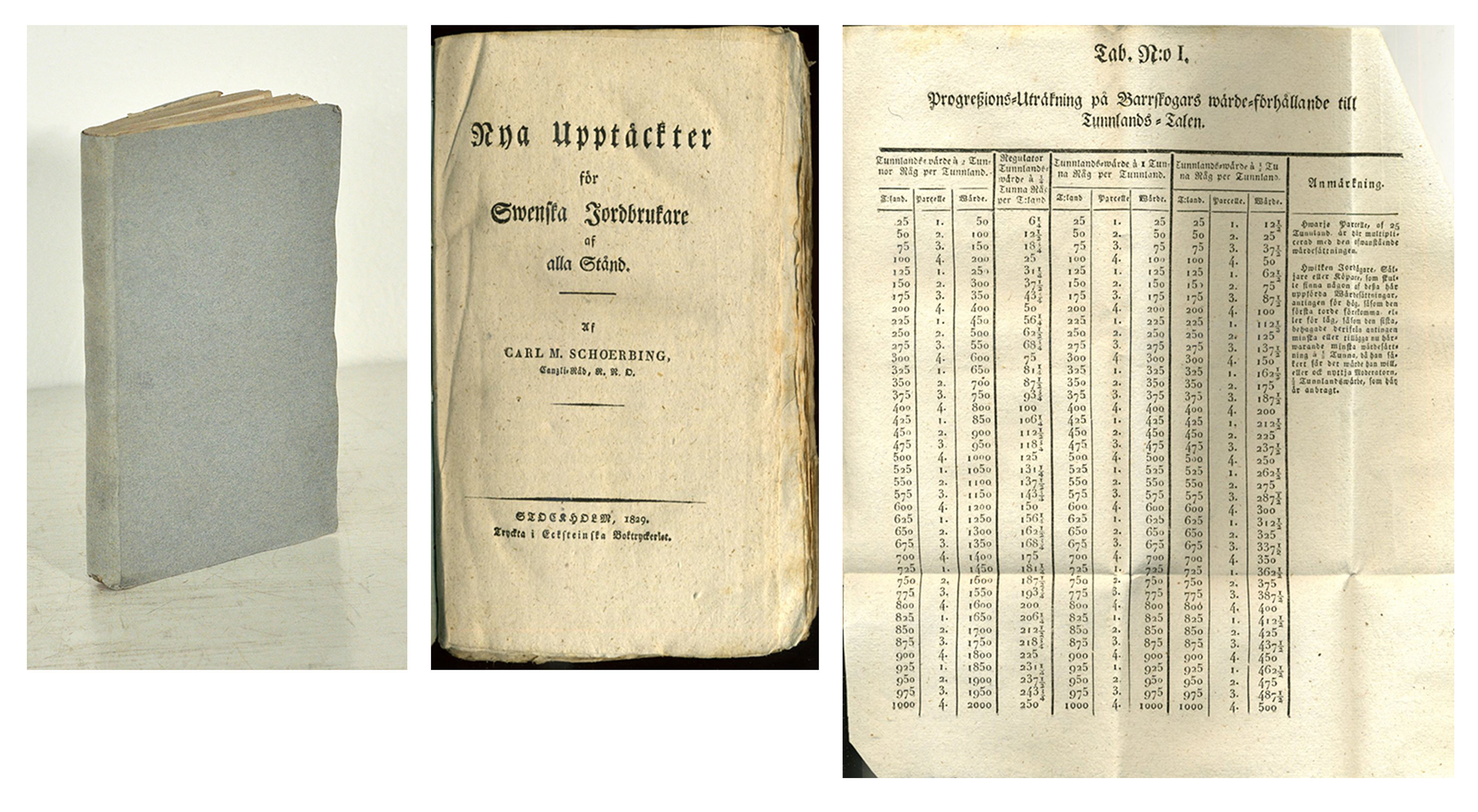 Sthlm, Ecksteinska boktryckeriet, 1829. 8:o. (4),221,(1 blank,1) s. & 5 utvikbara tryckta tabeller. Häftad, oskuren och ouppskuren i samtida gråpappomslag. Fint orört ex.