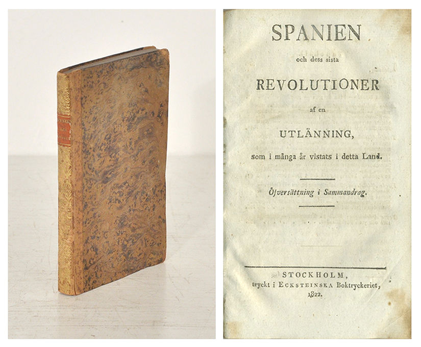 Sthlm, Ecksteinska boktryckeriet, 1822. 8:o. (2),VI,7-206 s. Samtida hfrbd med rikt guldornerad rygg och orange titeletikett. Rödstänkta snitt. Alrotsmarmorerat pärmpapper. Ryggen lite nött och blekt samt med en mindre spricka nederst i främre ytterfalsen. Frampärmen med en rätt kraftig diagonal tillstukning. Några småfläckar. Trevligt ex. trots pärmskadan.