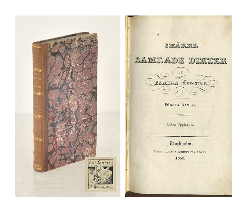 Sthlm, P. A. Norstedt & söner, 1832. 8:o. Litograferat titelblad,(4),290 s. Något nött samtida hfrbd med guld- och blindpressad ryggdekor. Blåsprängda snitt. Bortskrapad äldre ägaretikett. Exlibris för Siri Björklund, f. Algren. Bra ex. ur Arne Nilssons bibliotek.