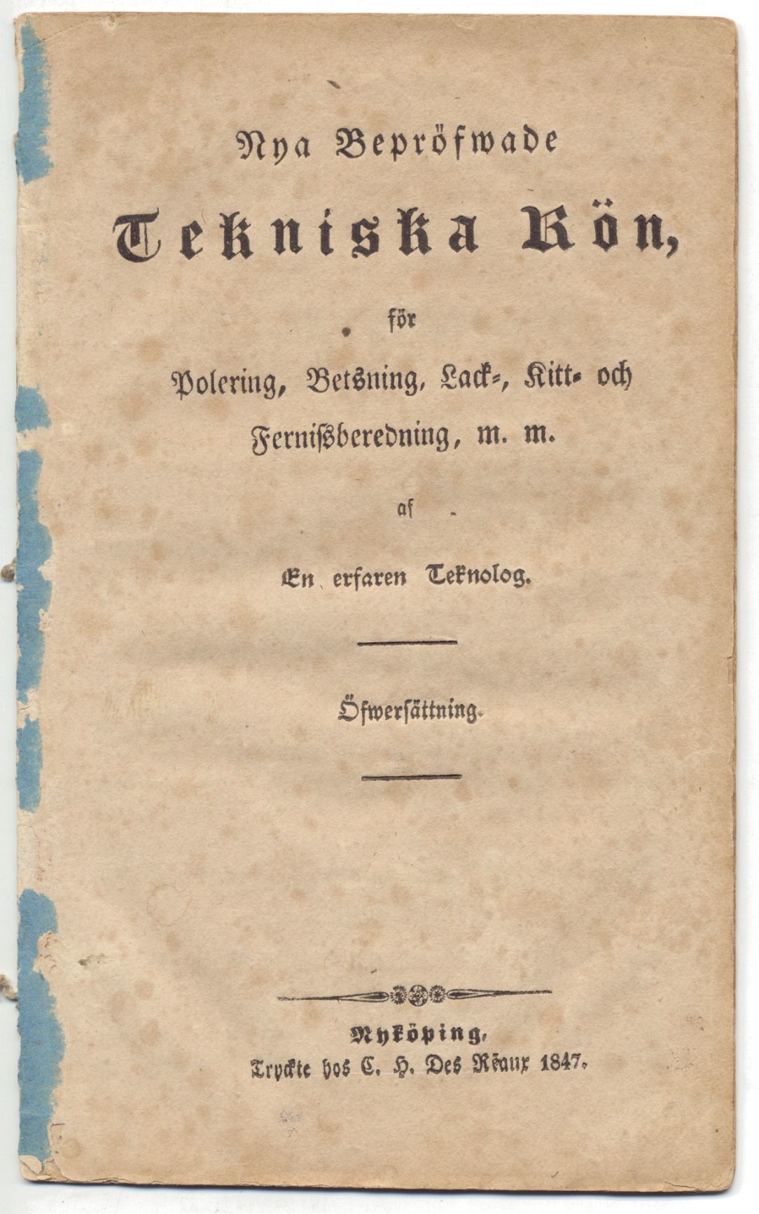 Nya bepröfvade tekniska rön, för polering, betsning, lack-, kitt- och fernissberedning, m.m. af En erfaren Teknolog. Öfwersättning.