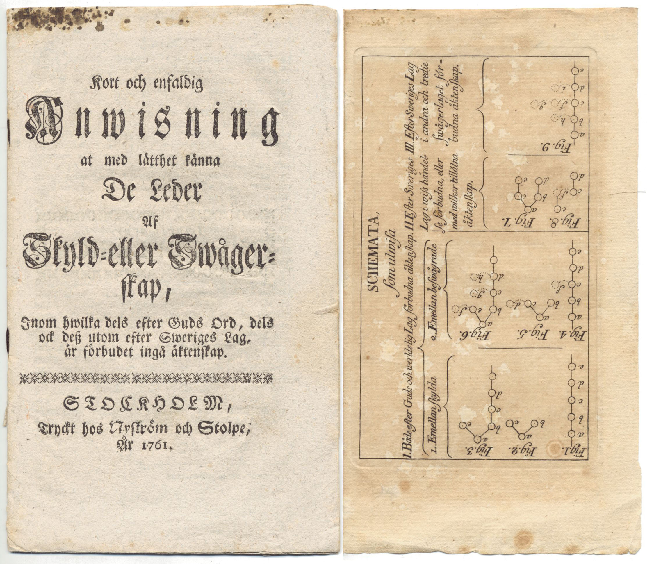 Kort och enfaldig anwisning at med lätthet känna de leder af skyld- eller swågerskap, inom hwilka dels efter guds ord, dels ock dess utom efter Sweriges lag, är förbudet ingå äktenskap.