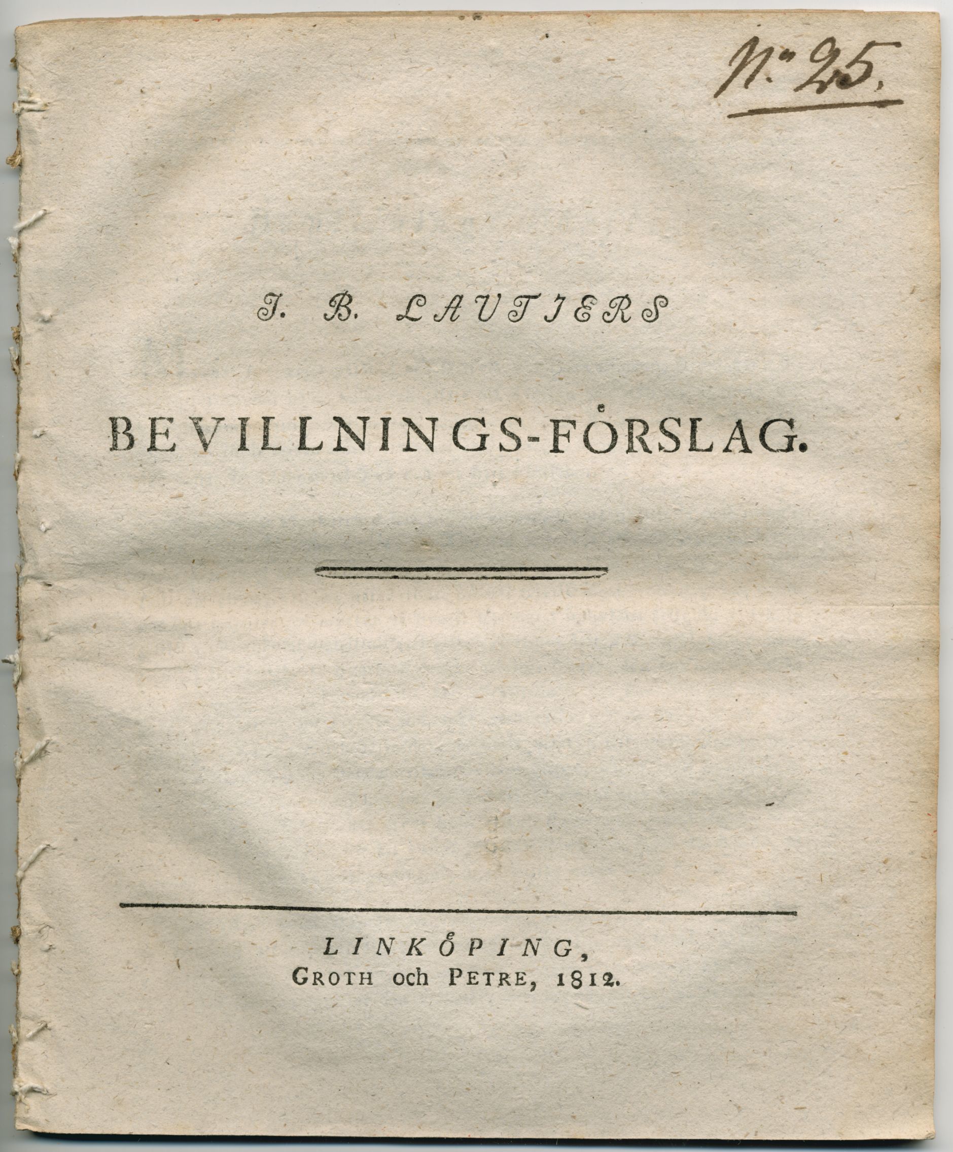 Bring Riksdagshandlingar s. 184 anger tre tryckta tabeller. Jean Baptiste Lautier (1754-1843) var italiensk generalkonsul.