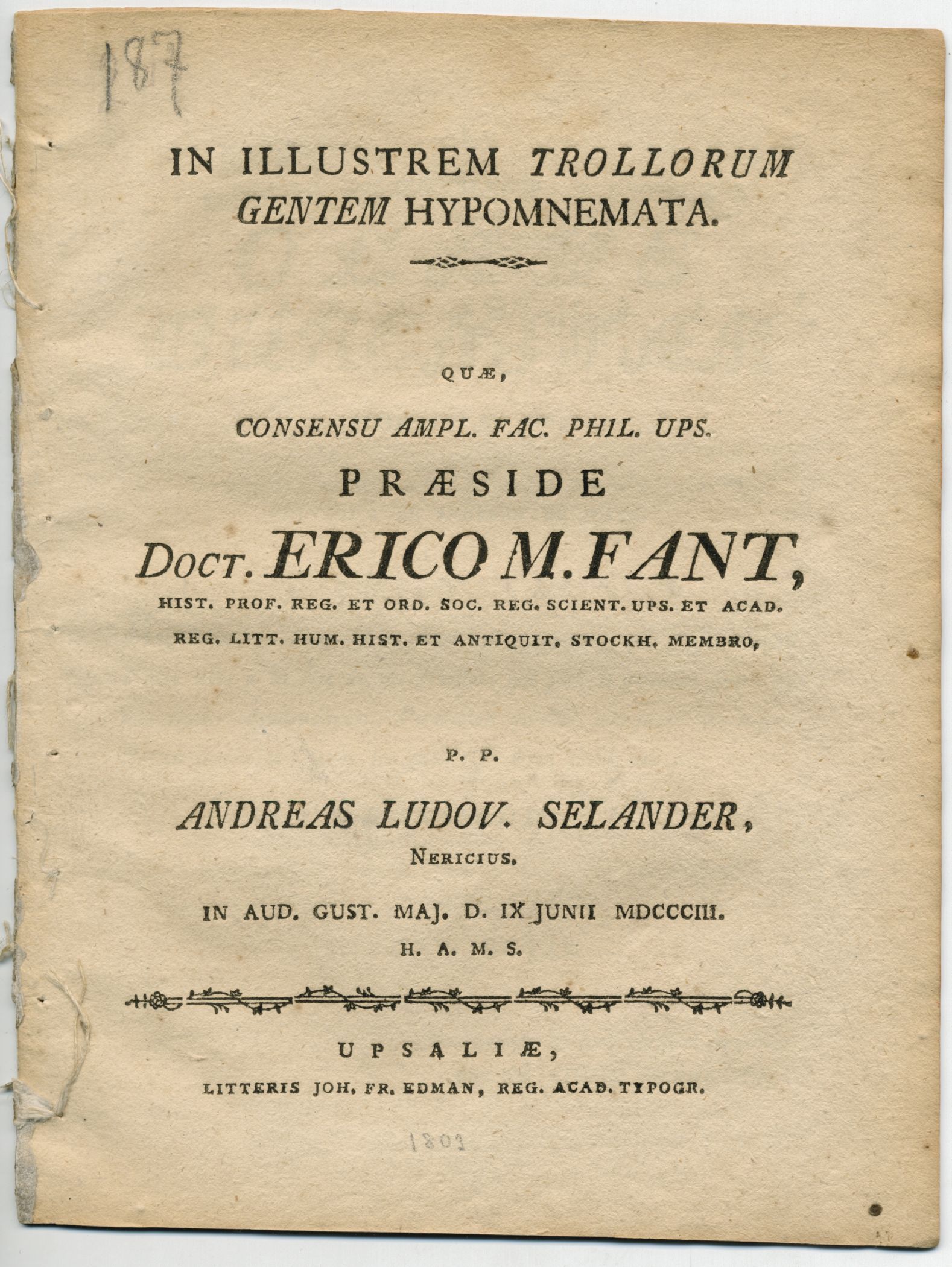 [Trolle] FANT, ERIC M. [preses] & SELANDER, ANDREAS LUDOV. [respondent].