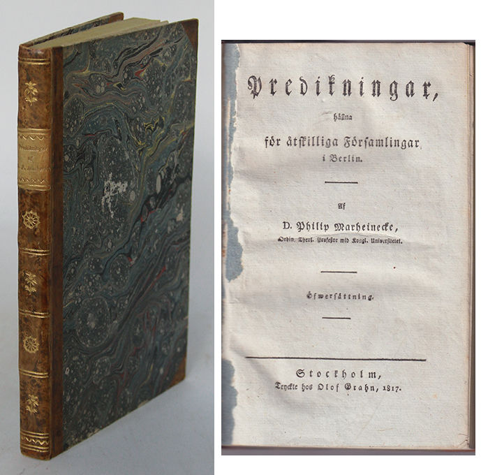 Philipp Marheinecke (1780-1846) var teologiprofessor i Berlin och idémässigt påverkad av Schelling och Hegel. En av predikningarna hölls vid Fichtes grav 1814. En annan upplaga med översättningar av Pehr Schönberg hade utgivits av Bruzelius i Uppsala 1816. I föreliggande upplaga finns ett kort förord av den anonyma översättaren som själv hört Marheineckes predikningar i Berlin omkring 1814.