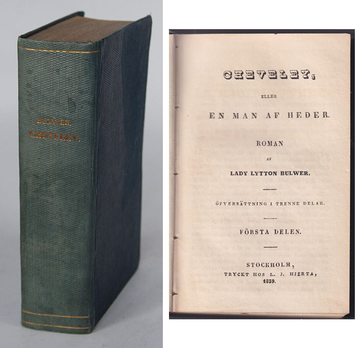 Furuland Bibliografi över svenska skönlitterära häftesserier L:87. Utgiven i Hjertas ”Nytt läse-bibliothek”. Översättning av Anders Fredrik Dalin. Rosina Bulwer-Lytton, född Doyle Wheeler, (1802-82) var engelsk romanförfattare och en tid gift med Edward Bulwer-Lytton. ”Cheveley” utkom 1836, efter äktenskapets upplösning, och i romanen karikerade författaren sin före detta make. Johan Sederholm (1813-83) övertog efter studier i Uppsala skötseln av Näfveqvarns bruk där han var brukspatron till sin död.