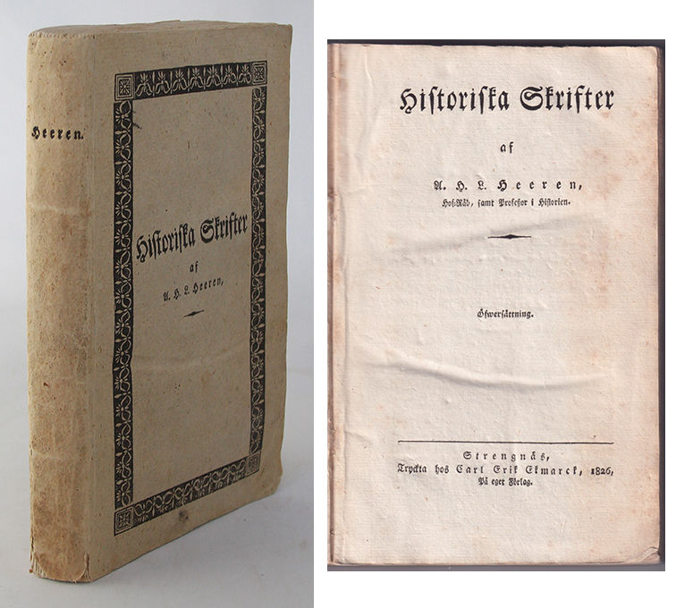 Översättning av delar av författarens ”Historische Werke”. Innehåller uppsatserna ”Utweckling af reformationens politiska följder för Europa”, ”Om politiska theoriernas uppkomst, utbildande och praktiska inflytande, samt om monarkiska principens upprätthållande uti det nya Europa” och ”Om karakteren af den despotiska författningen och af statsförfattningar i allmänhet”. Arnold Hermann Ludwig Heeren (1760-1842) var tysk historiker.