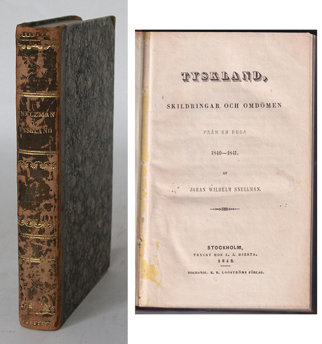 Johan Vilhelm Snellman (1806-81) var docent i filosofi vid Helsingfors universitet och en ivrig förkämpe för det finska språkets och den finska kulturens ställning. På sin resa besökte han bl.a. Köpenhamn, Köln, Bonn, Heidelberg, München, Wien och Berlin. I ett bihang ”Rese-ekonomi” redovisar han och resonerar kring resans utgifter.