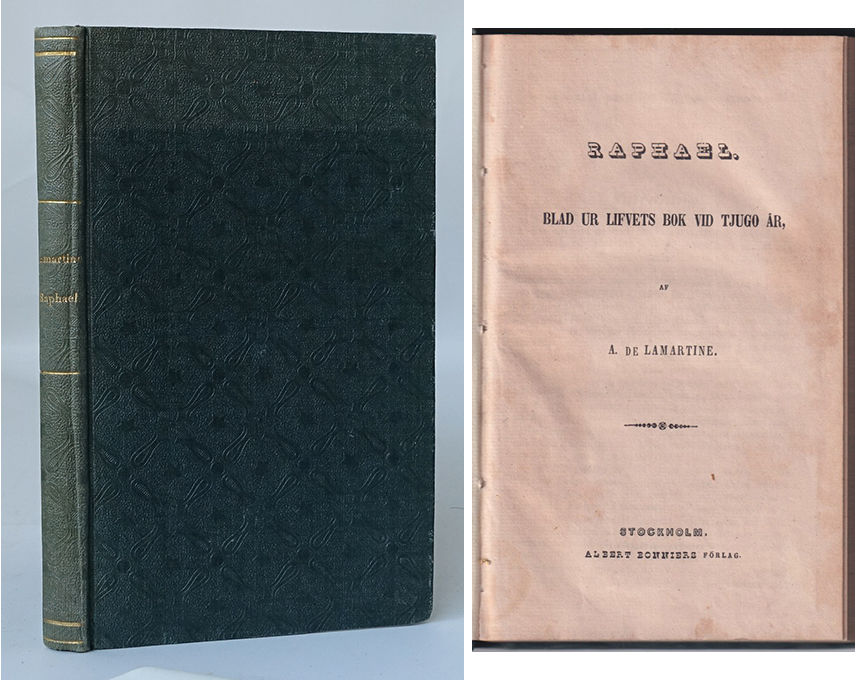 Furuland Bibliografi över svenska skönlitterära häftesserier E:24. Originalet utkom 1849. Översatt av Wilhelmina Stålberg. Alphonse de Lamartine (1790-1869) var fransk författare och politiker. Han var viktig inom den franska romantiken och anses även ha haft påverkan på de efterföljande symbolisterna. På svenska utkom bl.a. hans ”Minnen från en resa i Orienten” (1837) och ”Historia om revolutionen år 1848” (1849). Johan Sederholm (1813-83) och övertog efter studier i Uppsala skötseln av Näfveqvarns bruk där han var brukspatron till sin död.