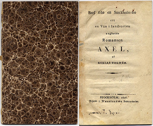 Bref från en Stockholmsbo till en vän i landsorten angående romansen Axel, af Esaias Tegnér.