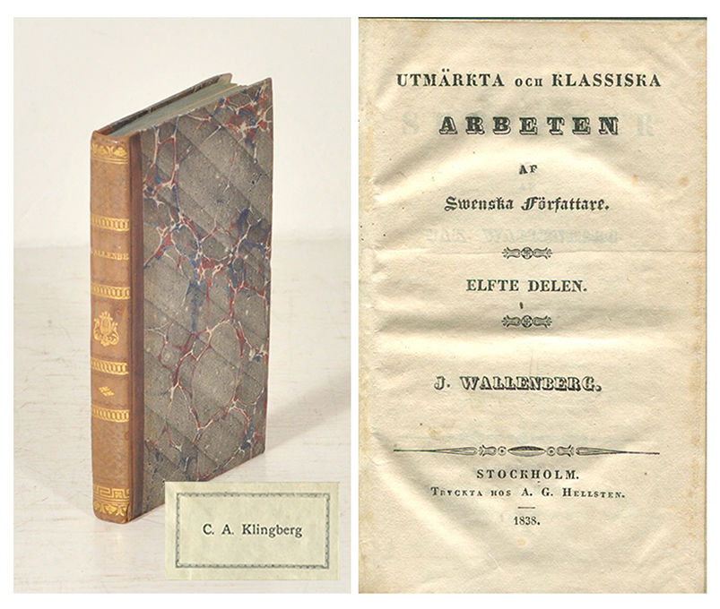Sthlm, A. G. Hellsten, 1836-39. 12:o. (10),93 + 92 + 136 s. Samtida ljusbrunt hfrbd med guld- och blindpressad ryggdekor inkluderande en dekorativ lyra. Grönstänkta snitt. Enstaka fläckar. Exlibrisetikett C. A. Klingberg. Fint ex.