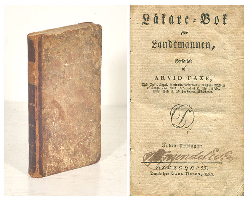 Bibliotheca Walleriana 2968 för första upplagan som utkom i Karlskrona 1792. Läkarboken är utarbetad i samråd med sonen Carl Arvid. I företalet lägger Faxe ut texten om bland annat vildarna, som lever utanför kunskapens ljus, men som ändå ”lefwa lycklige, ty de känna icke sin olycka”. Alfabetiskt uppställd med råd och dåd mot sjukdomar. På slutet finns en förteckning över lämpliga medikamenter till ”ett socken- bruks- hus- och rese-apotek” och ”Diet i mat och dryck för sjuka”. Arvid Faxe (1733-93) utnämndes till förste amiralitetsmedikus i Karlskrona 1779 och är känd för sitt författarskap inom sjömedicinen.