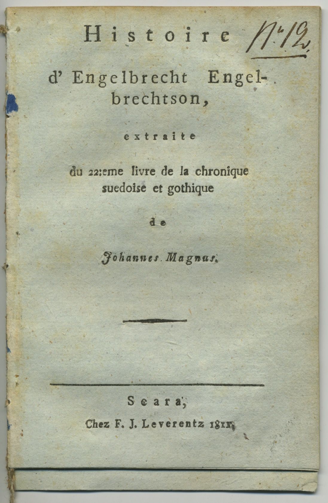 Histoire d’Engelbrecht Engelbrechtson, extraite du 22:eme livre de la chronique suedoise et gothique de Johannes Magnus.