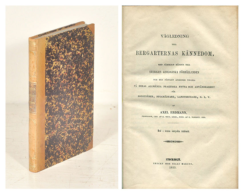 Vägledning till bergarternas kännedom, med särskild hänsyn till Sveriges geologiska förhållanden och med fästadt afseende tillika på deras allmänna praktiska nytta och användbarhet för konstnärer, byggmästare, landtbrukare, o.s.v. Med i texten intryckta trädsnitt.
