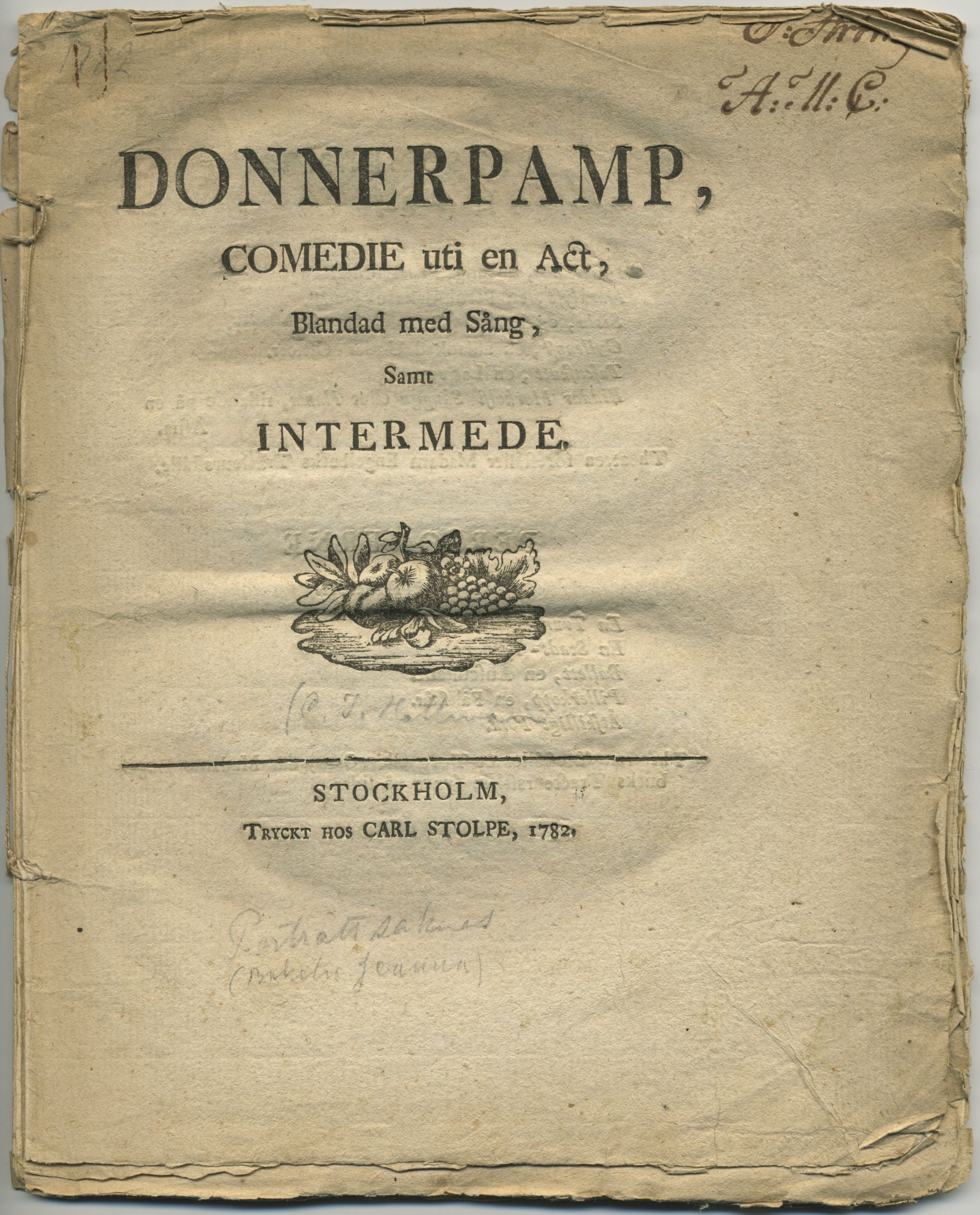 Donnerpamp, comedie uti en act, blandad med sång, samt intermede.