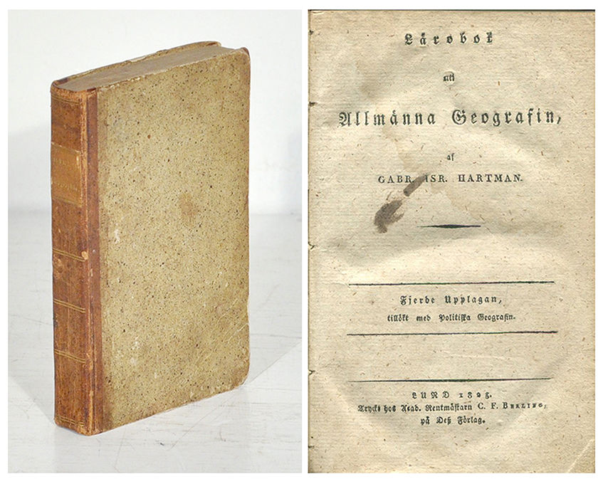 Hammarsköld Förtekning s. 167. Första upplagan trycktes i Åbo 1806. Utkom sedan många gånger fram till den artonde upplagan 1869 och beröms av ”Svenskt biografiskt lexikon” för ”sin friska och levande stil”. Behandlar både matematisk och fysisk geografi. Ett kapitel rör naturens riken. Gabriel Israel Hartman (1776-1809) odlade mångfaldiga intressen, men mest känd var hans verksamhet som filosof.