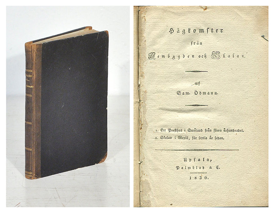 Setterwall Svensk historisk bibliografi 6514. Cappelin Anteckningar till en småländsk biografi s. 121. Wingborg Litteratur om Växjö 302. Andra upplagan utkom samma år och följdes av nya utgåvor 1842, 1861 och 1888. Utgivare var C. G. Rogberg. De båda delarna har separata titelblad med egna impressum men gemensam paginering. ”Ett presthus i Småland” skrevs ursprungligen som en slags tröst åt vännen E. M. Fant då denne förlorat sin maka 1801. Manuskriptet tillhörde Fant och hans släkting Rogberg gav ut det efter Ödmanns bortgång. ”Skolan i Wexiö” skrevs sannolikt ca 1805. ”Ett presthus i Småland” översattes till danska av Molbech och trycktes 1834 i ”Dansk ugeskrift”.