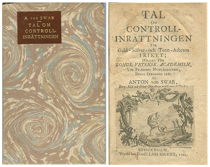 Med ett svar av Vetenskapsakademiens sekreterare Pehr Wargentin på s. 41-42. Författaren blev 1756 överdirektör för Kontrollverket, vilket hade grundats 1752 i samband med att enhetlig kontrollstämpling för hela landet av guld- och silverarbeten hade påbjudits. 1759 infördes gemensamma årsbokstäver. Anton von Swab (1702-68) var bergsråd och under längre studieresor i Norge, Tyskland, Böhmen, Ungern, Österrike, Italien, Frankrike, Holland och England (tillsammans med Nils Psilanderhjelm) bedrev han intensiva studier inom kemi, mineralogi och bergsvetenskap samt blev en av de bredast bildade och kunnigaste inom sitt område. Han invaldes i Vetenskapsakademien redan 1739.