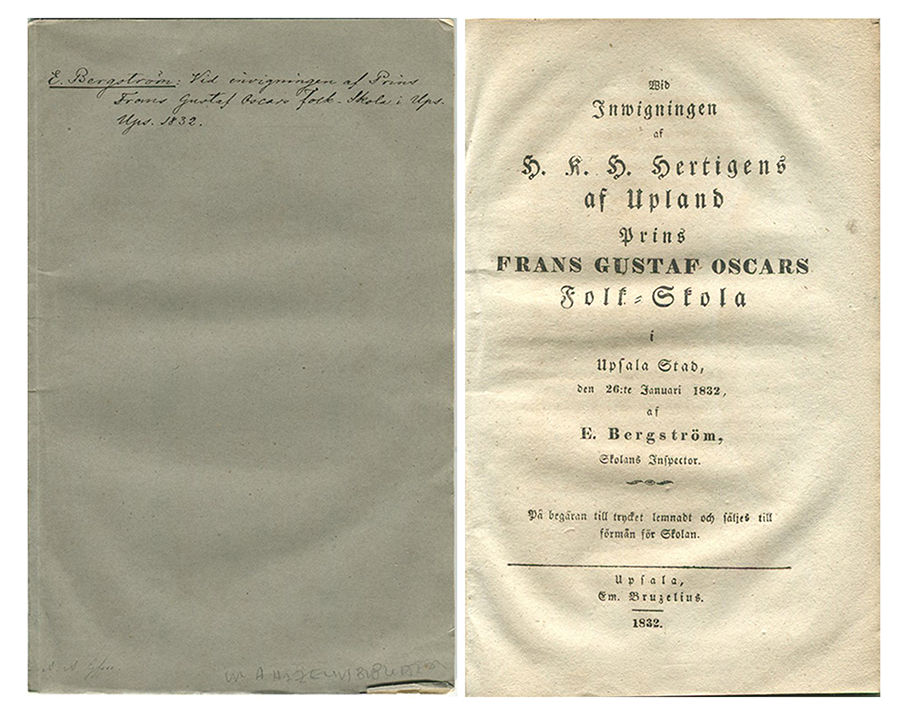Wid inwigningen af h.k.h. hertigens af Upland prins Frans Gustaf Oscars folk-skola i Uppsala stad, den 26:te januari 1832. På begäran till trycket lemnadt och säljes till förmån för skolan.