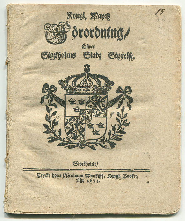 Kongl. may:tz förordning/ öfwer Stockholms stadz styrelse.