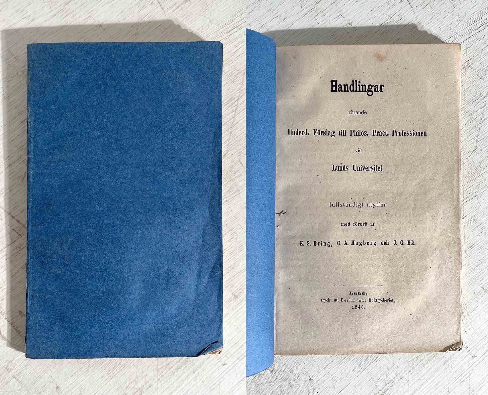 Handlingar rörande underd. förslag till philos. pract. professionen vid Lunds universitet fullständigt utgifna med förord af E. S. Bring, C. A. Hagberg och J. G. Ek.
