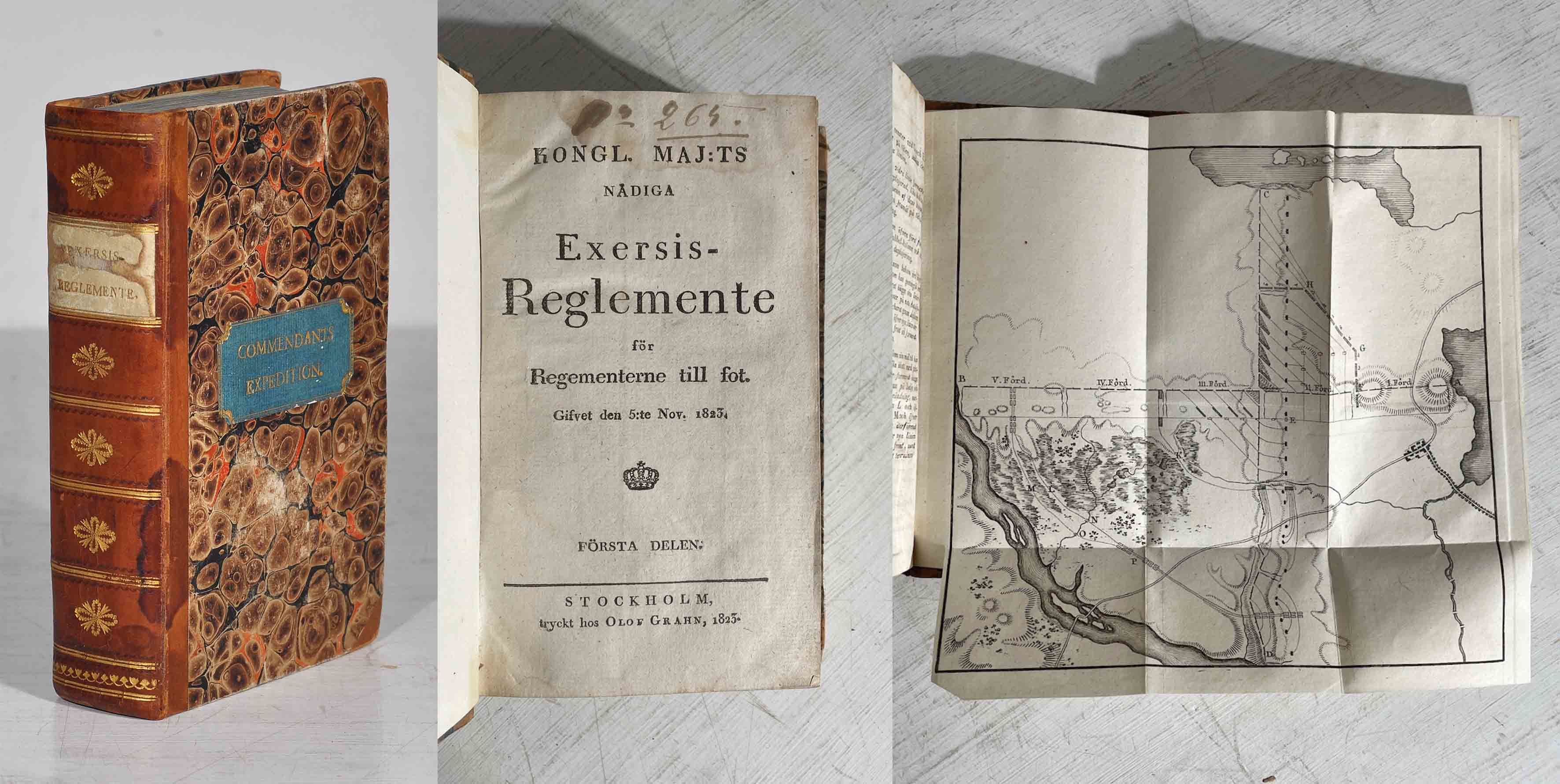 Kongl. maj:ts nådiga exersis-reglemente för regementerne till fot. Gifvet den 5:te nov. 1823. I-II.