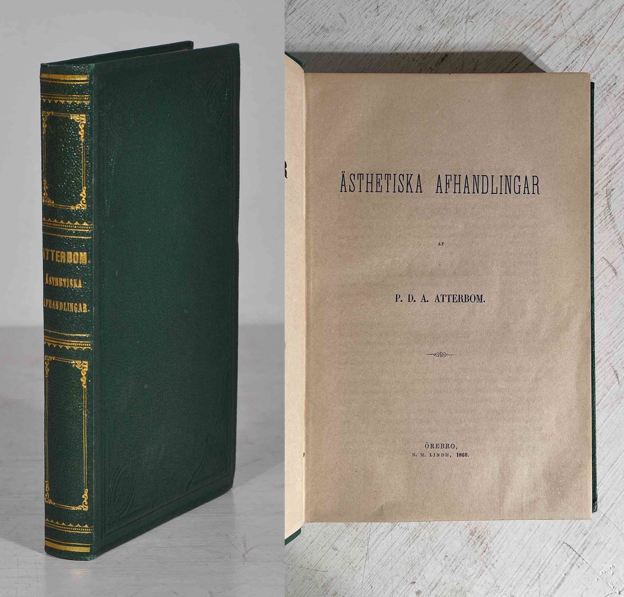 Örebro, 1866. 8:o. VII,(1 blank,1,1 blank,1,1 blank),314 s. Mycket välbevarat samtida grönt mönsterpressat klbd med guldornerad rygg och blindpressad rik ramdekor på pärmarna. Marmorerade snitt. Delvis lite bruntonad och med enstaka lagerfläckar. Bra ex.