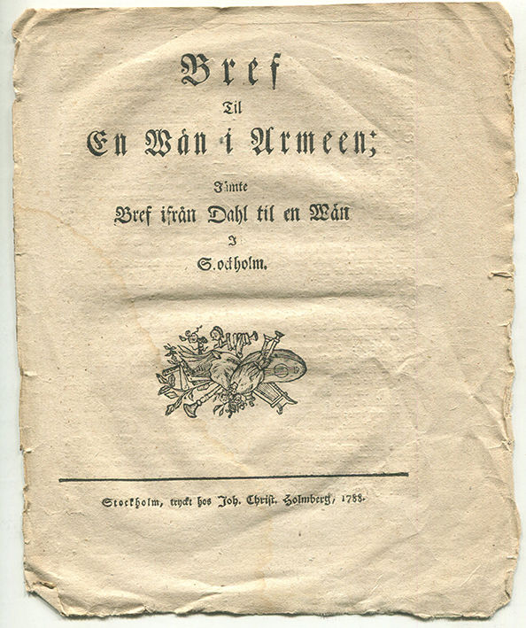 Bref til en wän i armeen; jämte bref ifrån Dahl til en wän i Stockholm.