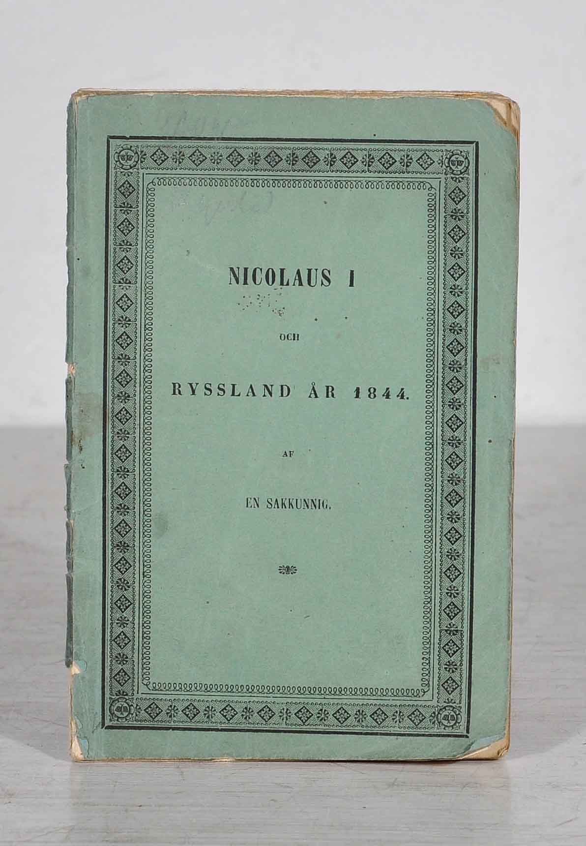 Nicolaus I och Ryssland år 1844. Några ord om ryska sjelfherrskarens mysteriösa resa till England på våren 1844, hans politiska afsigter om farhågorna för det ryska öfverväldet; jemte några anekdoter från ryska hofvet och en blick på Rysslands inre förhållanden m.m. af en sakkunnig. Öfversättning från fransyskan.