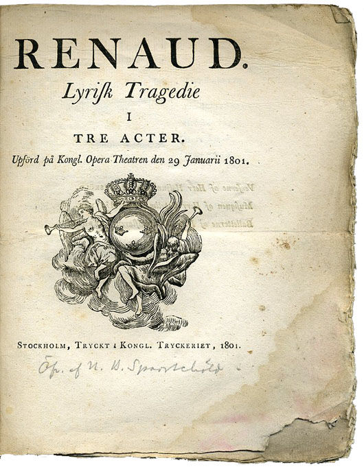 Renaud. Lyrisk tragedie i tre acter. Upförd på Kongl. opera theatren den 29 januarii 1801.